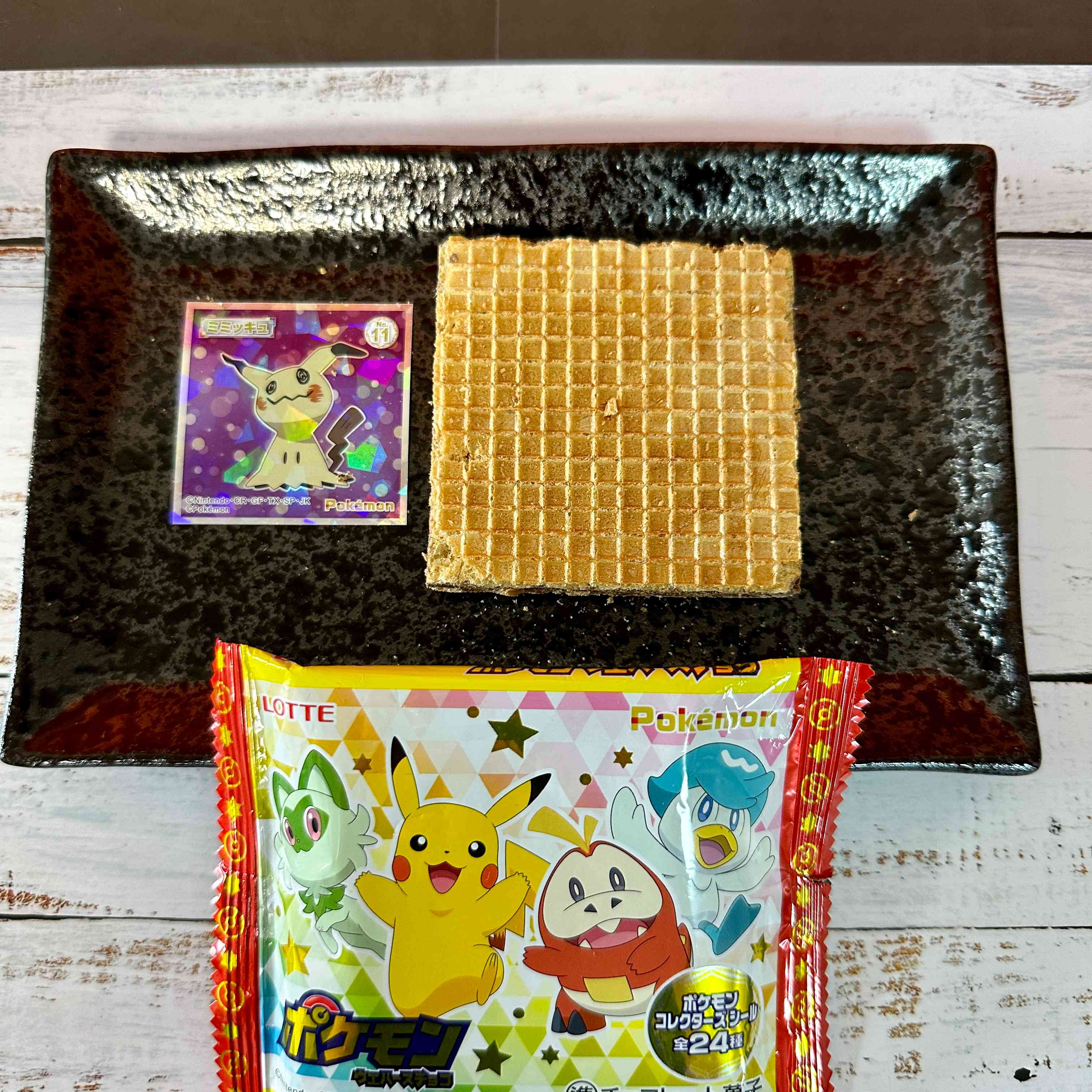 It's wafer chocolate with Pokémon collector's seals inside. There are a total of 24 collector's seals to collect.