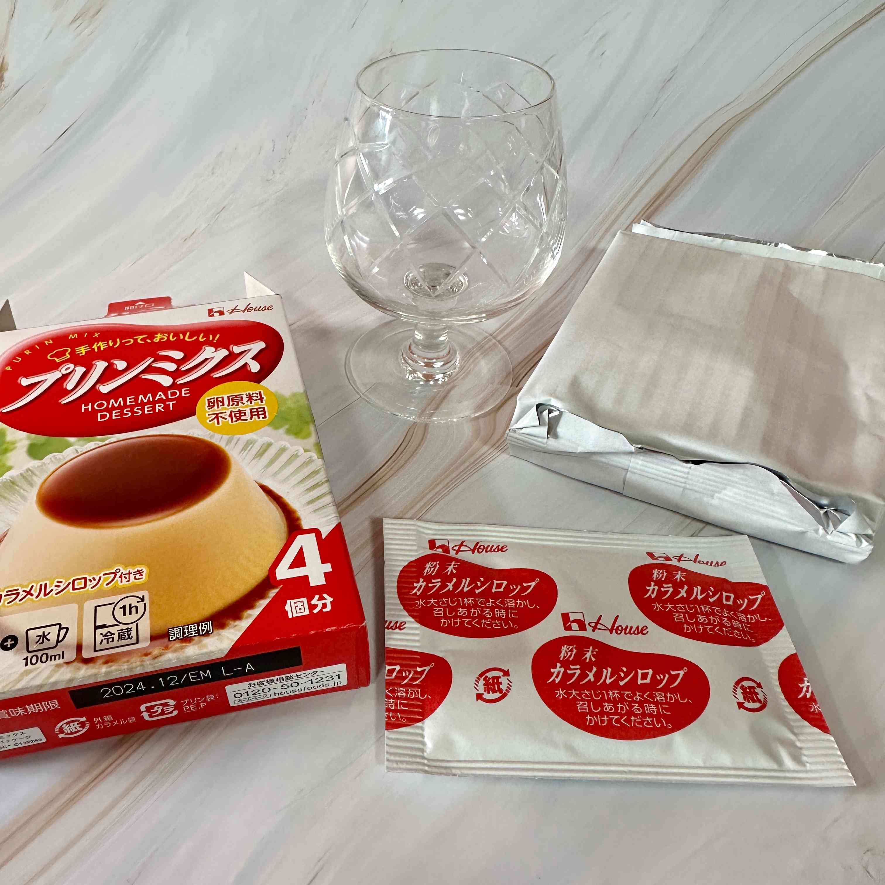 This is a pudding mix that can be easily prepared with 80°C hot water. It comes with powdered caramel syrup and does not contain egg ingredients.