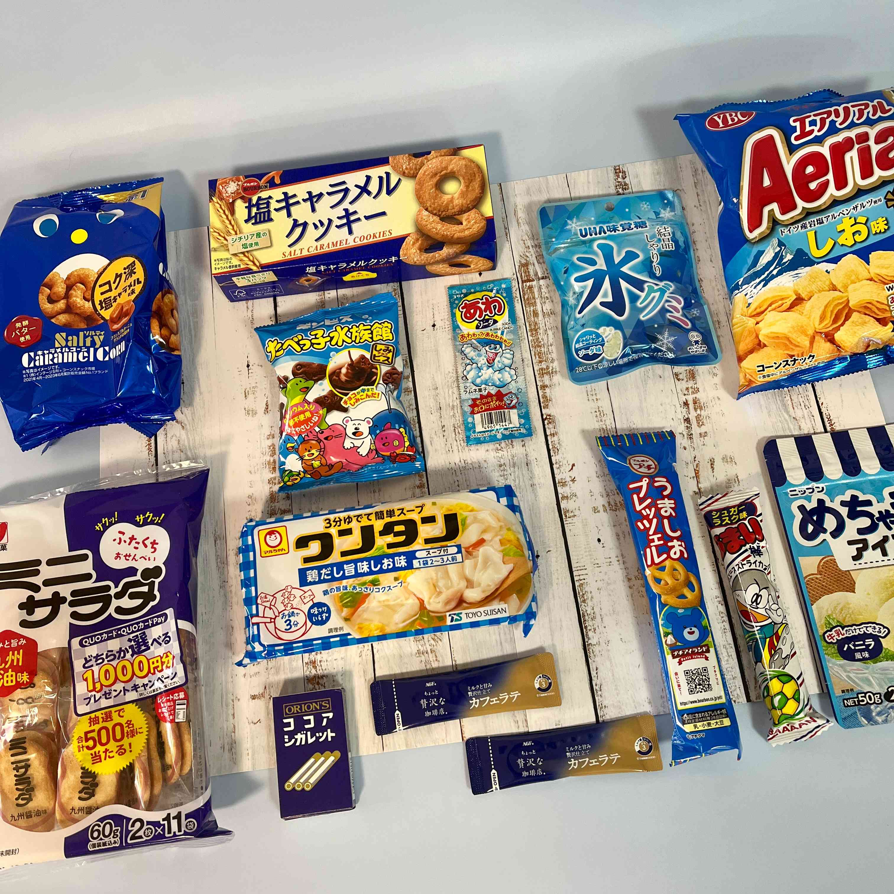 The OMOTENASHIBOX for June is packed with a variety of salty products. Each offers a different salty flavor, so please enjoy comparing them. Additionally, we have included easy-to-make ice treats and frozen gummies, perfect for the upcoming hot summer.